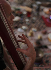 While moving through the space, I play with ethnic instruments from different traditions, such as;